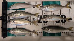 極寒の海でしたが、「狙った場所」で「狙った時間」に、ターゲットのアジを釣り上げることができました!