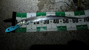 夕方6時過ぎでしたが、なんとか一匹釣れました。(アジも一匹)