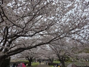 昨年の4月中旬ごろは既に半分近く葉桜でしたが(昨年の記事はこちら)、今年は散り始めの、まさに「最後の見ごろ」。